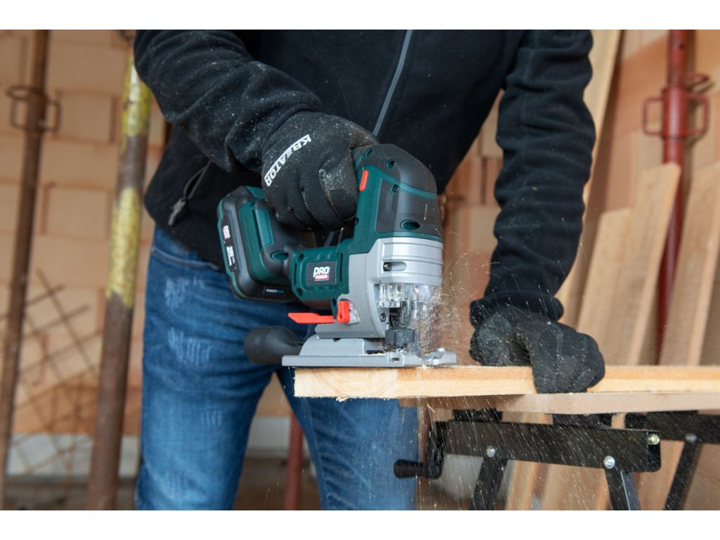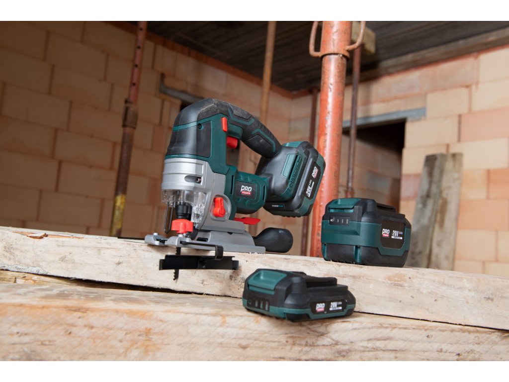 Tato 20V profesionální akumulátorová přímočará pila od PowerPlus je ideální pro přesné řezy. Vyznačuje se rychlostí otáčení až 2.600 min-1 a 4 nastaveními kyvadla. Kyvadlový pohyb vám umožňuje rychle a přesně řezat tvrdší materiály s maximální hloubkou až 135 mm u dřeva a 10 mm u oceli. Bezuhlíkový motor je výkonný a odolný s nižšími vibracemi, menšími nároky na údržbu a delší životností. Přímočará pila Pro Power má silnou hliníkovou základnu, která umožňuje šikmé řezy a lze ji naklonit o 45st v obou směrech. Pilové plátky lze snadno vyměnit beznástrojovým systémem rychlé výměny. Připojte stroj k vysavači a budete mít vždy jasný výhled na linii řezu. Součástí je jeden list do skládačky na dřevo. Baterie a nabíječka nejsou součástí dodávky. Prodávají se samostatně a jsou kompatibilní s celou kolekcí Pro Power. Jedná se o baterie POWPB90100, POWPB90200, POWPB90300 a nabíječka POWPB90700.Vlastnosti: