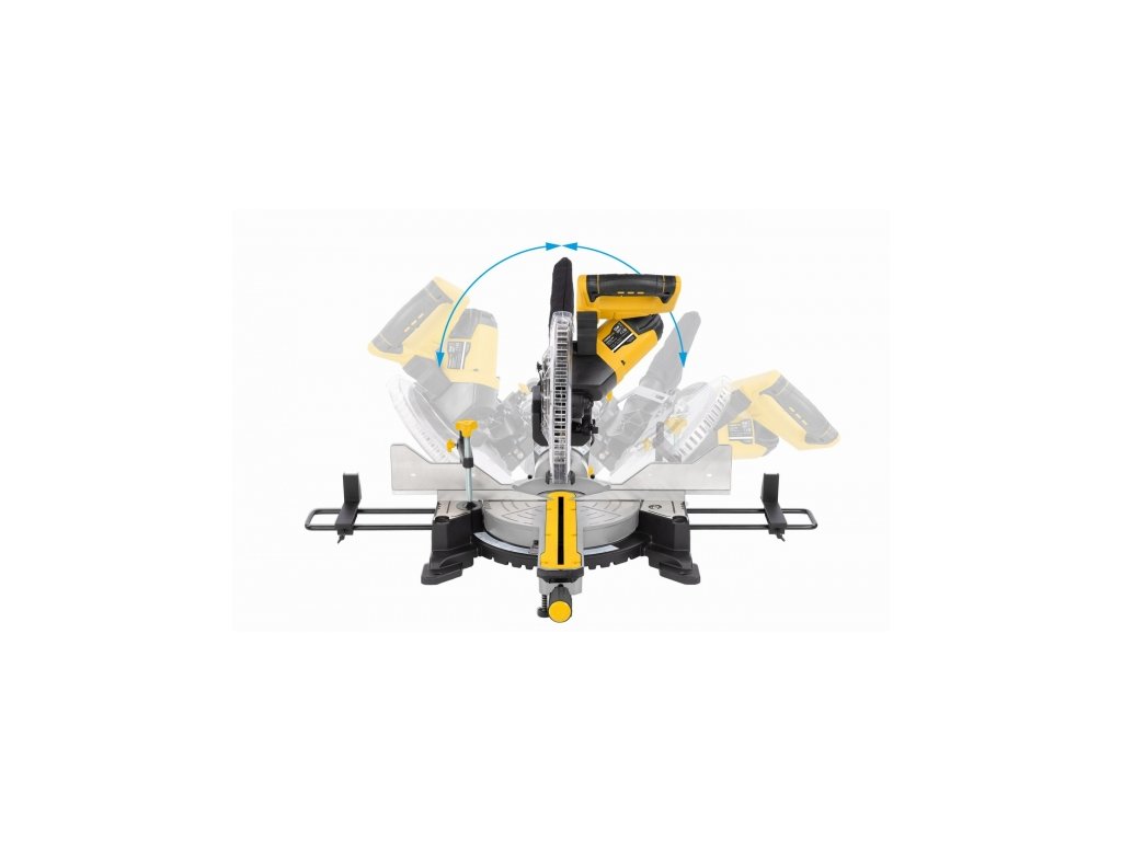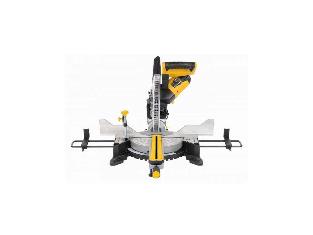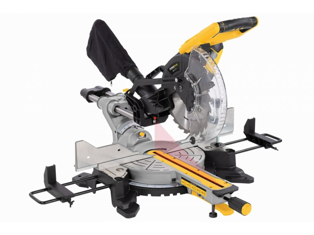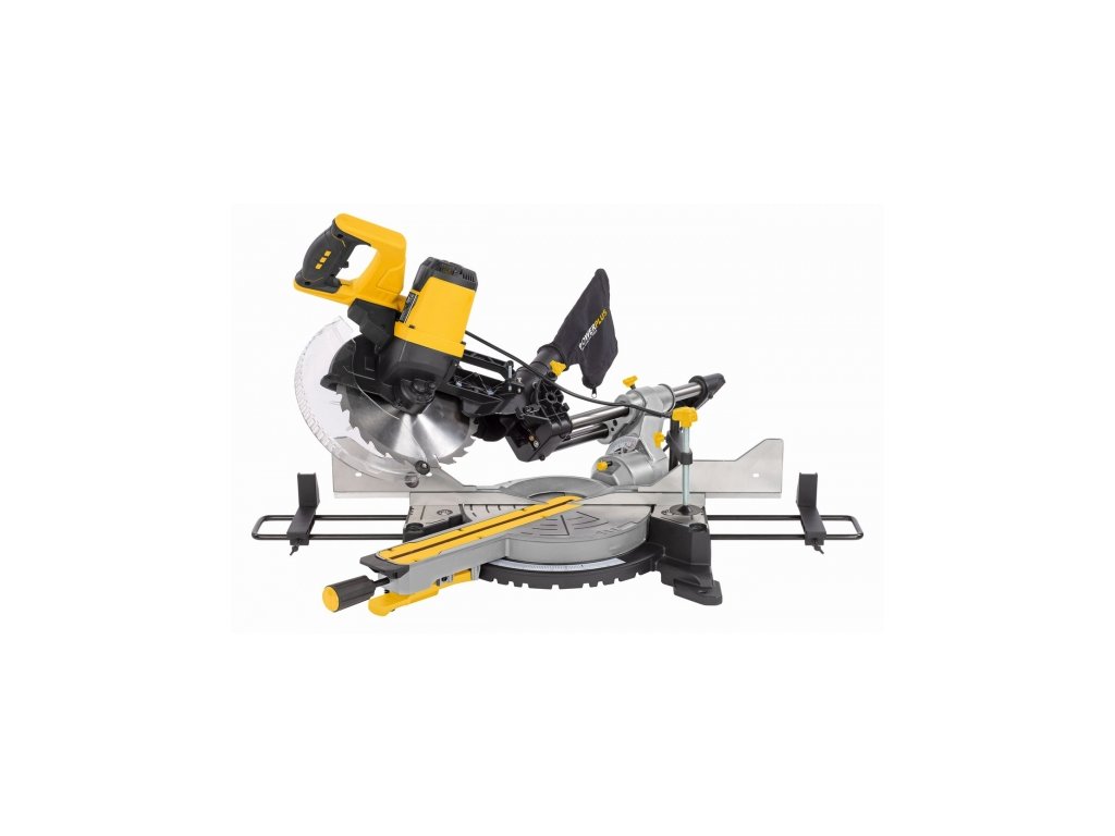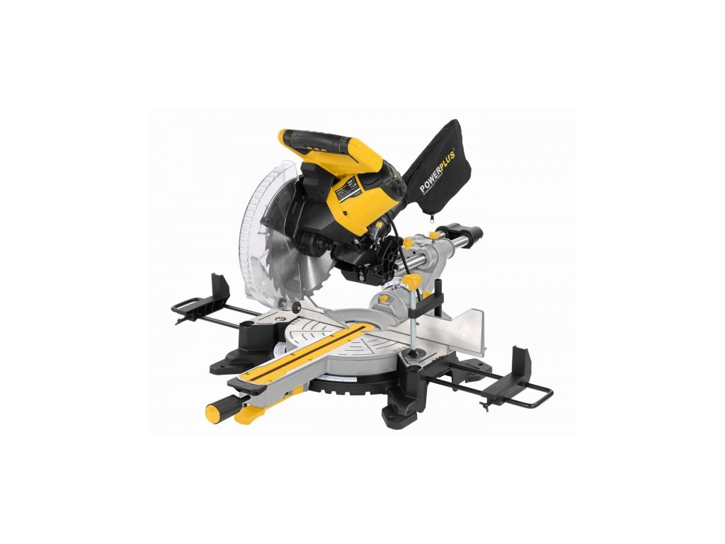 Tato pokosová pila s potahem a oboustranným náklonem od společnosti Powerplus se silným motorem 2.200 W má pilový kotouč prům.