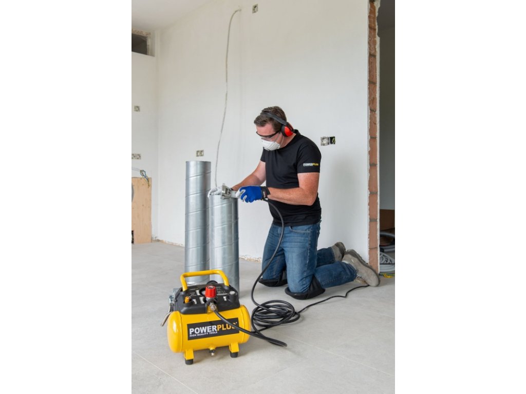 POWX1724S - Kompresor SILENT 550W 6L plus 10ks přísl. Bezolejový + 3x pracovní rukavice zdarma a záruka 3 roky