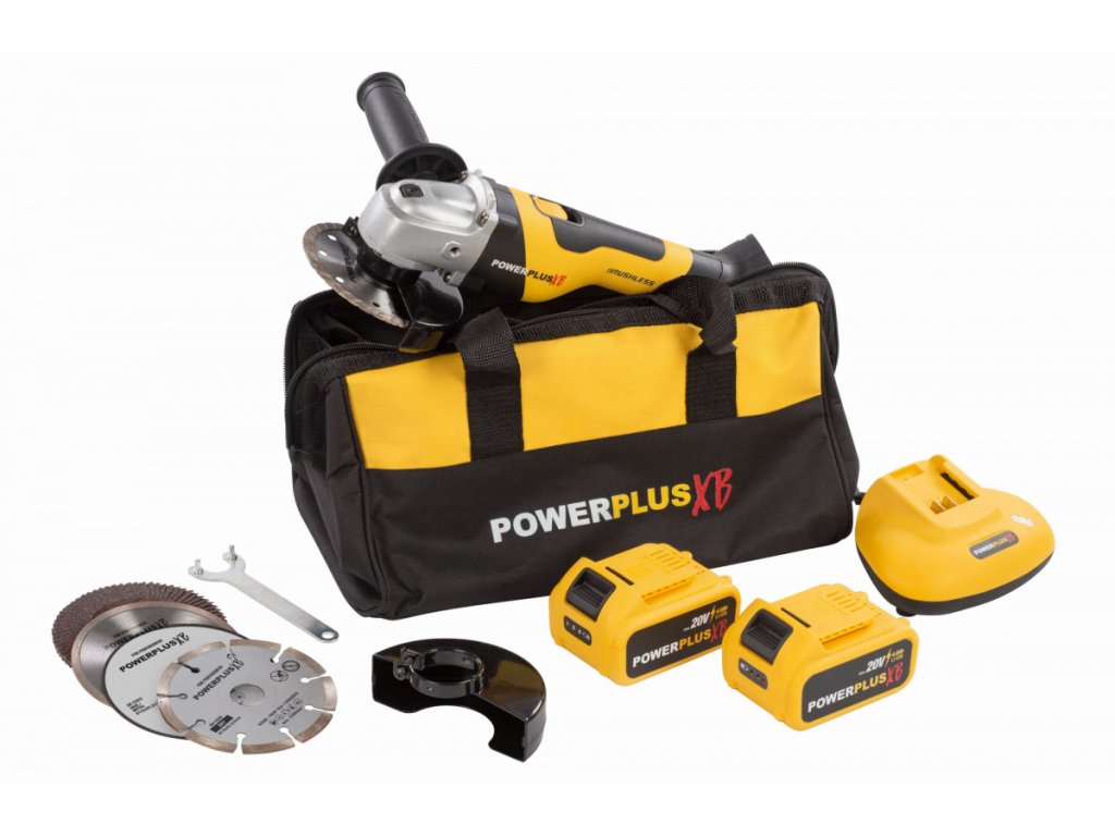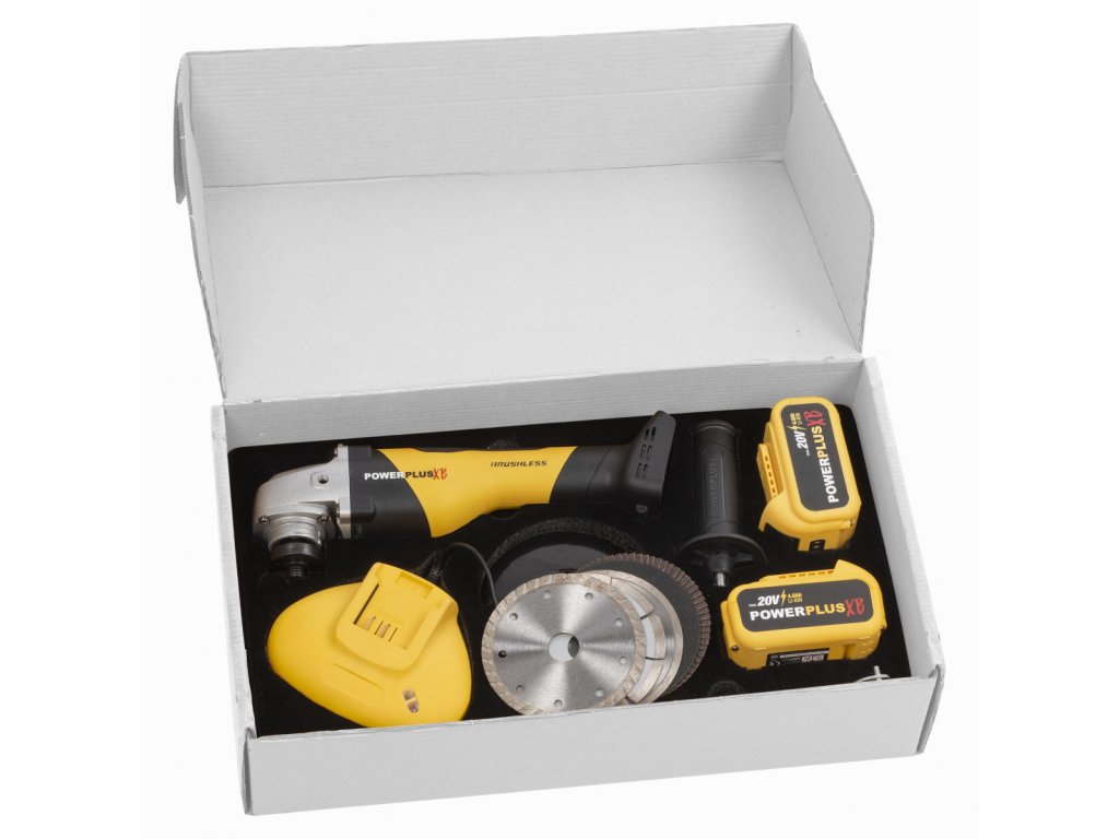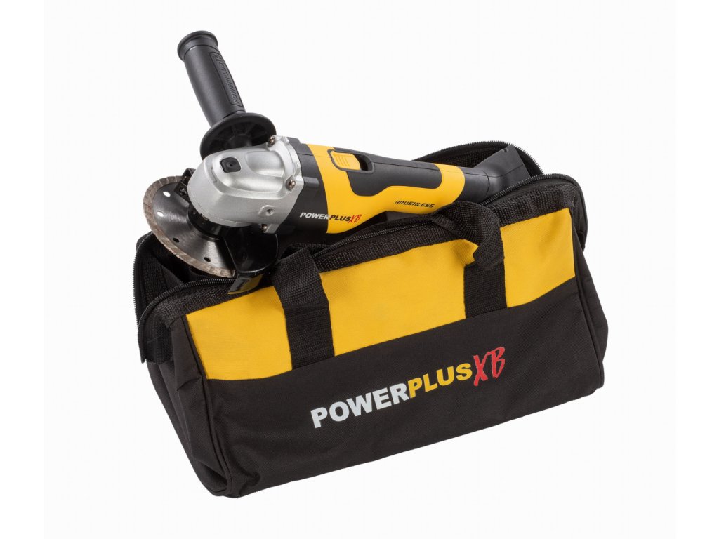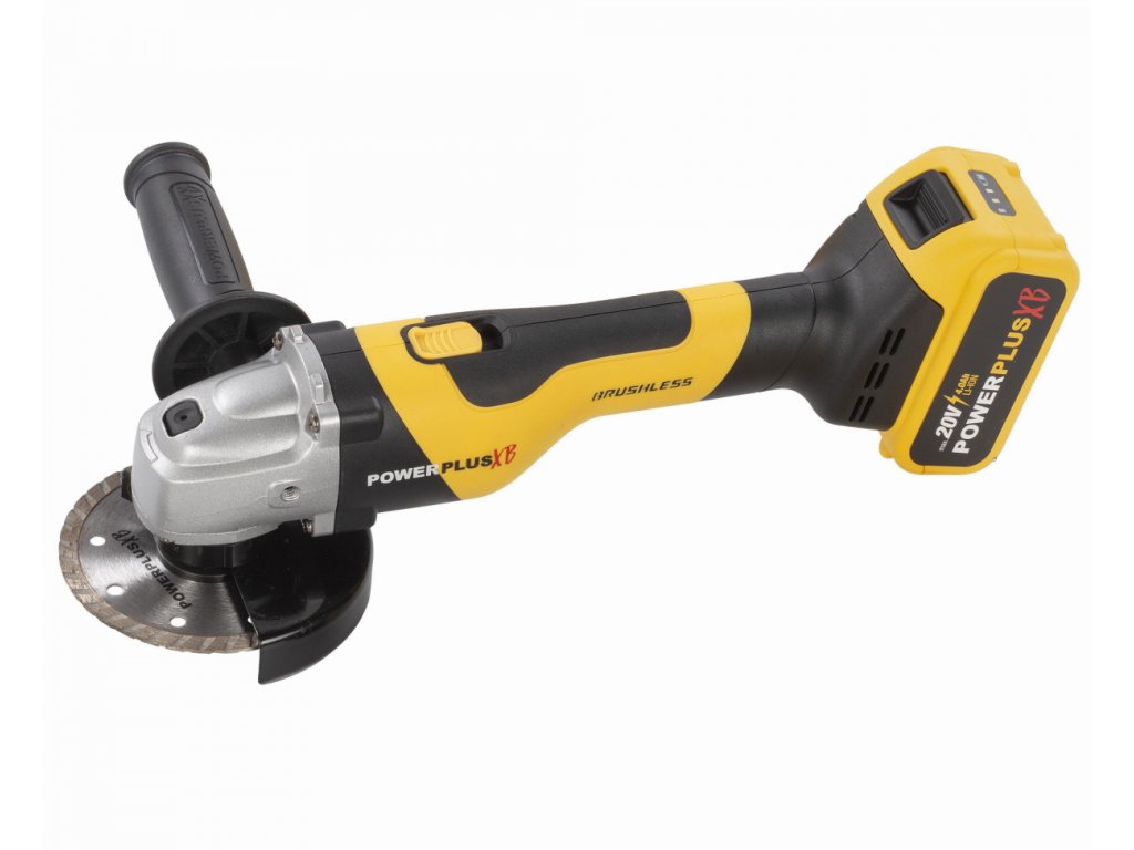 Kompaktní Aku úhlová bruska POWXB20030 od PowerPlus z řady Powerplus XB je snadno ovladatelná díky své nízké hmotnosti a měkké rukojeti.