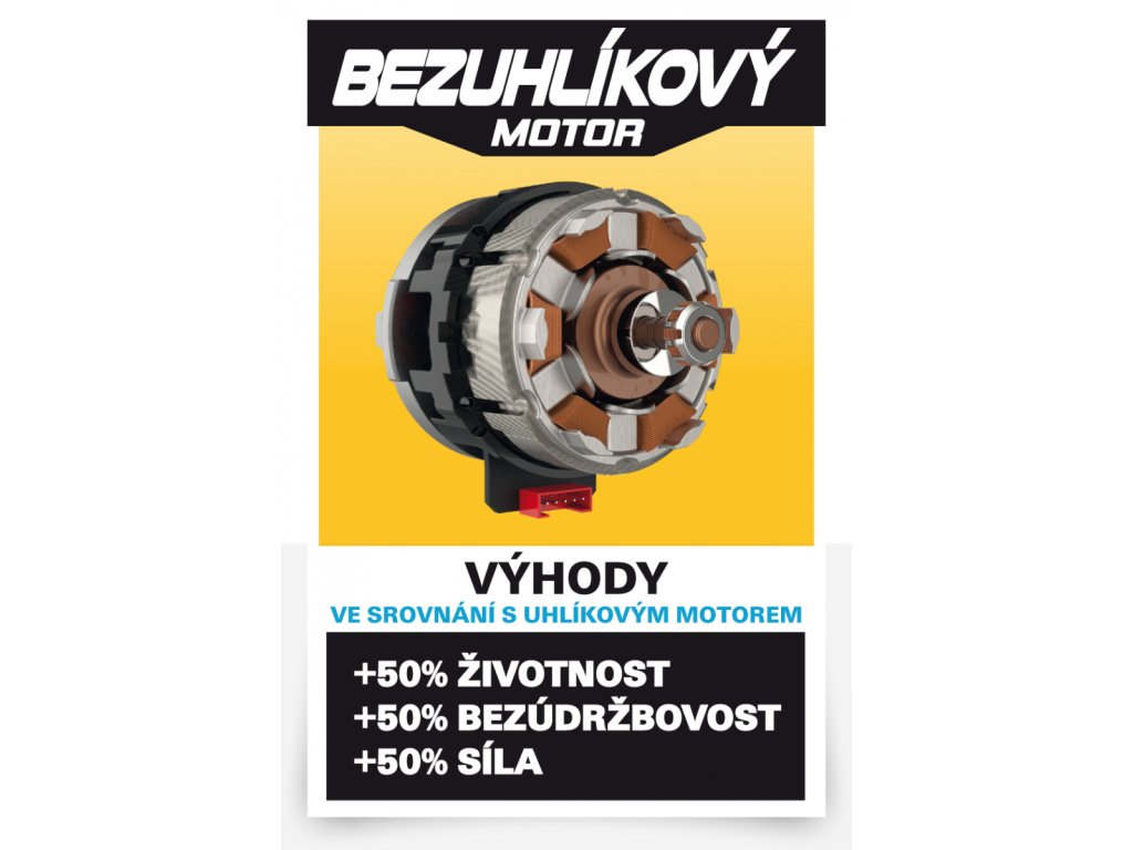 Je vybaven odolným a výkonným bezuhlíkovým motorem, který vyžaduje méně údržby a zaručuje delší životnost.