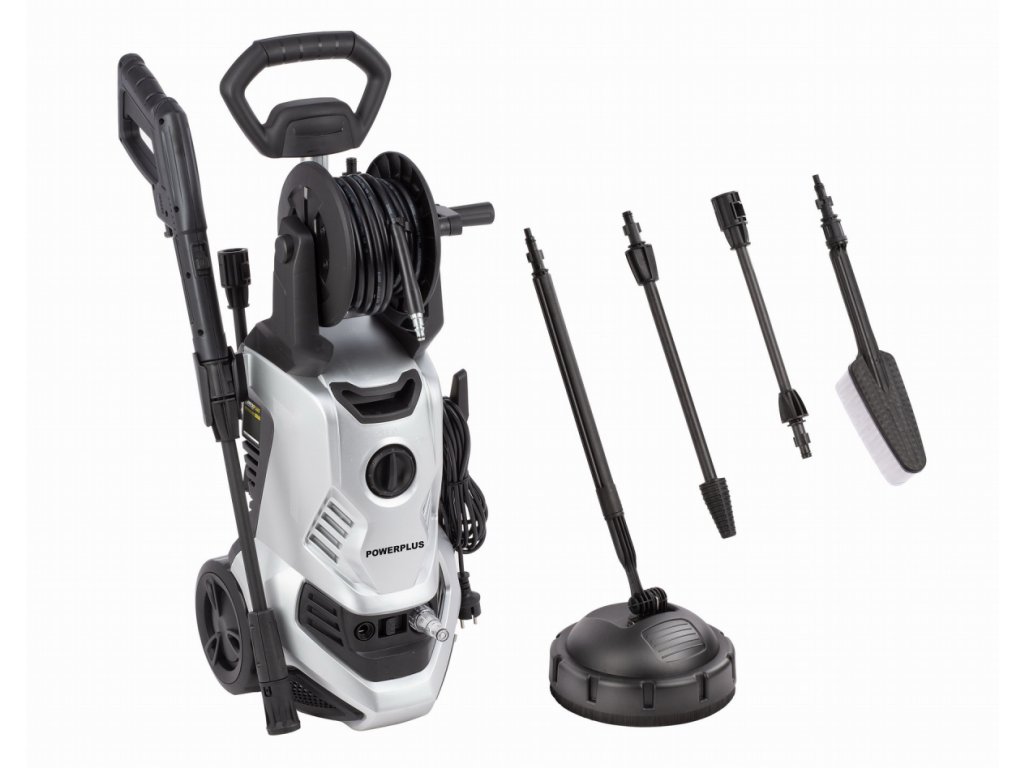 Motor s výkonem 2 000 W, průtokem až 450 litrů za hodinu a maximálním tlakem 160 barů. Tato tlaková myčka Powerplus POWXG90416 nabízí dostatek energie k dokončení každé práce, jako jsou čištění: strojů, vozidel, konstrukcí, nástrojů, fasád, teras, zahradnického náčiní,… . Jeho 5 m dlouhý el. kabel a 8 m vodní hadice nabízejí potřebnou flexibilitu a rozšířený rozsah pohybu. Tlaková myčka je vybavena navijákem na hadici a držákem na kabel, takže se nikdy nemohou zamotat. Se systémem automatického start-stop, který umožňuje motor běžet pouze při stisknutí spouště, pomáhá POWXG90416 šetřit vodu a elektřinu. Díky dodávanému příslušenství lze tlakovou myčku použít k čištění teras, odstraňování odolných nečistot a odstraňování ucpaných trubek. S integrovanou 850ml nádržkou na čisticí prostředek s automatickým sáním, dosahuje tlaková myčka ještě lepších výsledků čištění. Díky praktickým kolečkům a rukojeti je snadno přepravovatelným strojem. Tlaková myčka je dodávána s nastavitelnou tryskou, pevným kartáčem, čističem terasy, turbo tryskou a nastavitelnou tryskou.