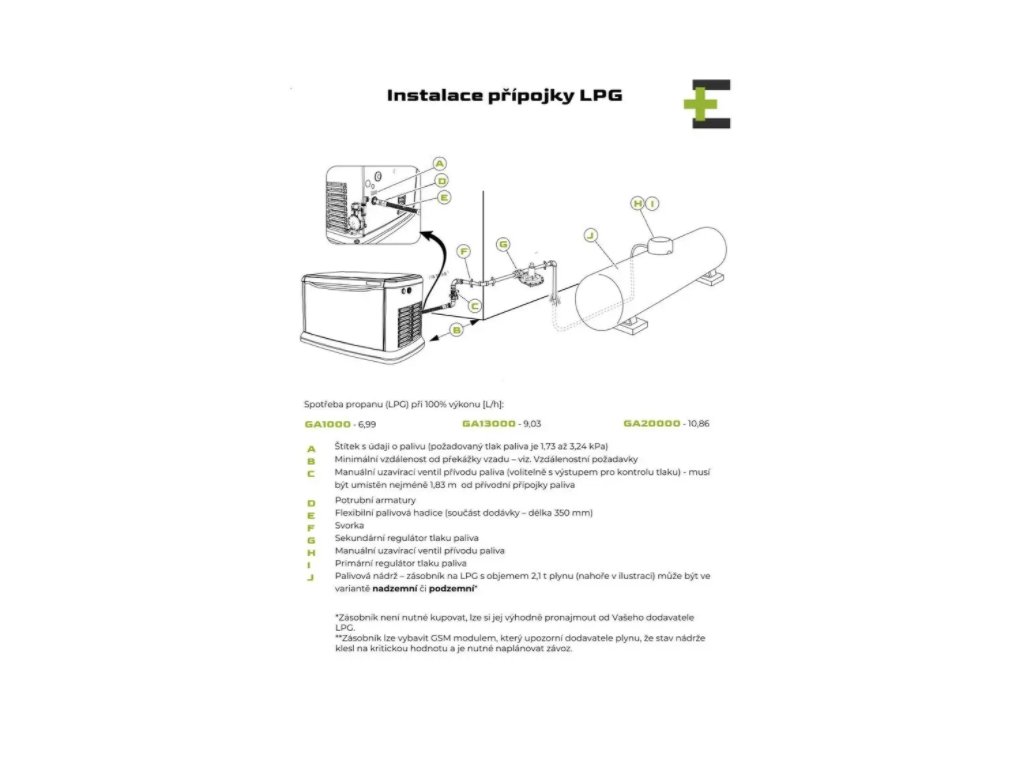 - Pohotovostní výkon 10 kVA / 10 kW (LPG) a 10 kVA / 10 kW (zemní plyn)