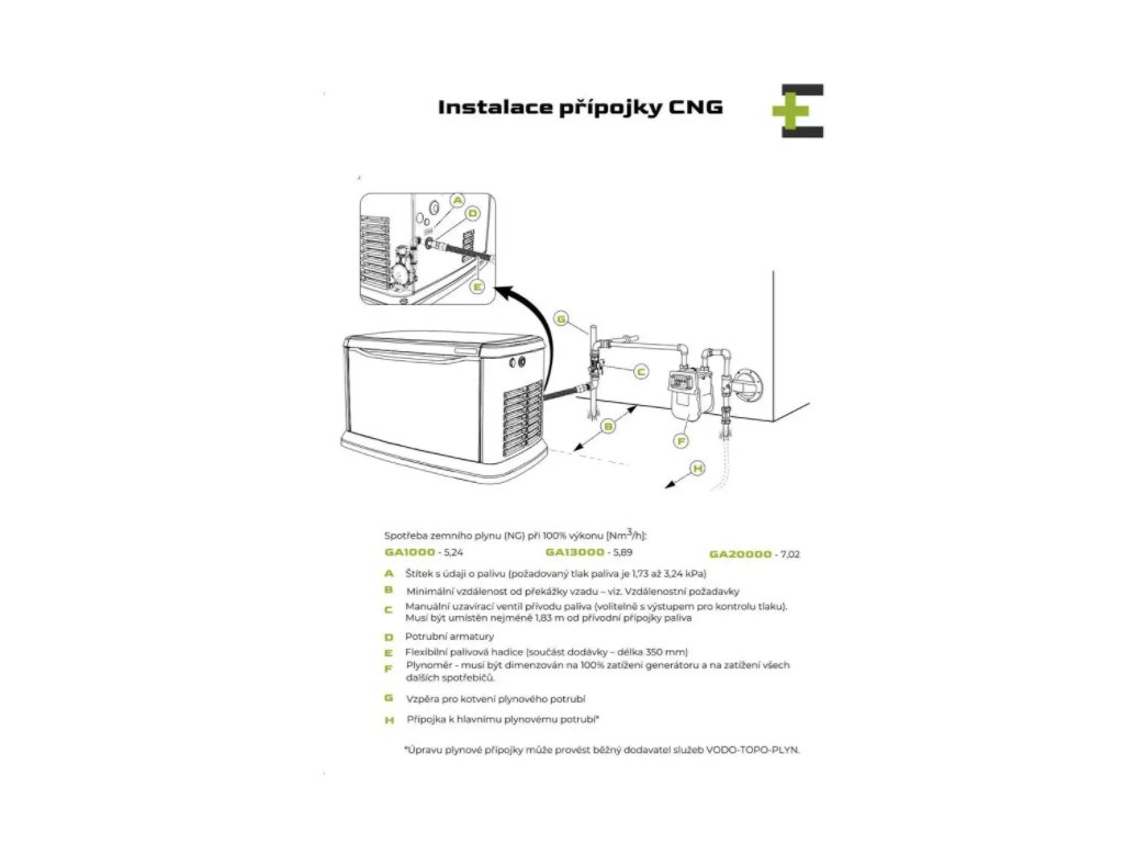 - Flexibilní přípojka palivového vedení o délce 30,5 cm: Pohlcuje veškeré vibrace elektrocentrály při připojení k plynovodu.