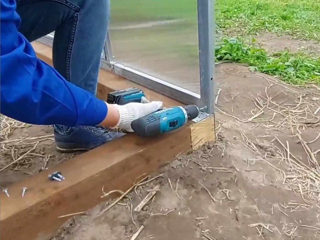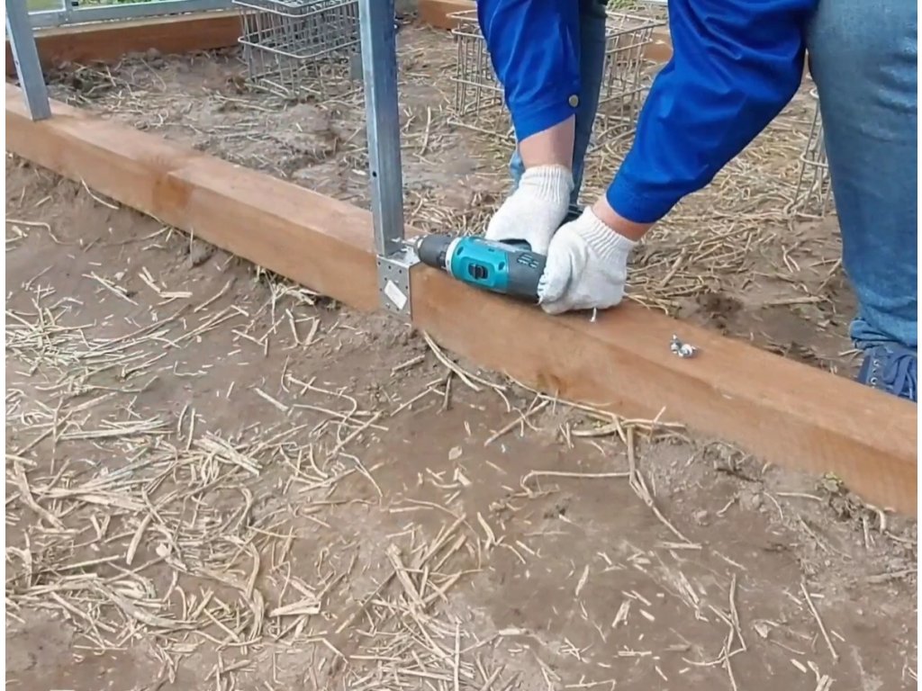Ideální postup montáže - sestavte jedno čelo skleníku. Do konců oblouků zasuňte kotvu a odměřte potřebné vnější rozměry dřevěného rámu. Vyrobte a pevně připevněte rám k podezdívce nebo k zemi. Rám musí být v rovině a v pravém úhlu (tzn. jeho úhlopříčky musí být stejné). Na vybrané konce oblouků nasaďte kotvu, pevně ji přišroubujte k dřevěnému rámu a samořezným šroubem prošroubujte konec rámu s kotvou. Tím zajistíte, že se rám z kotvy nevyvlékne.