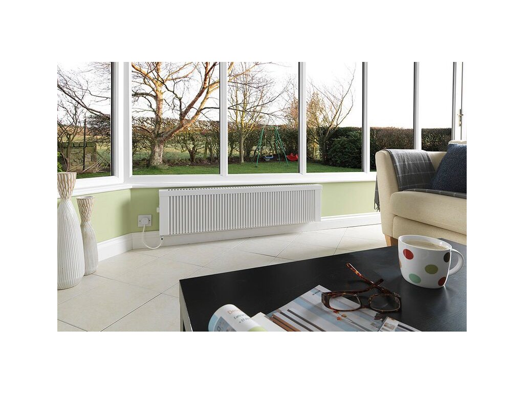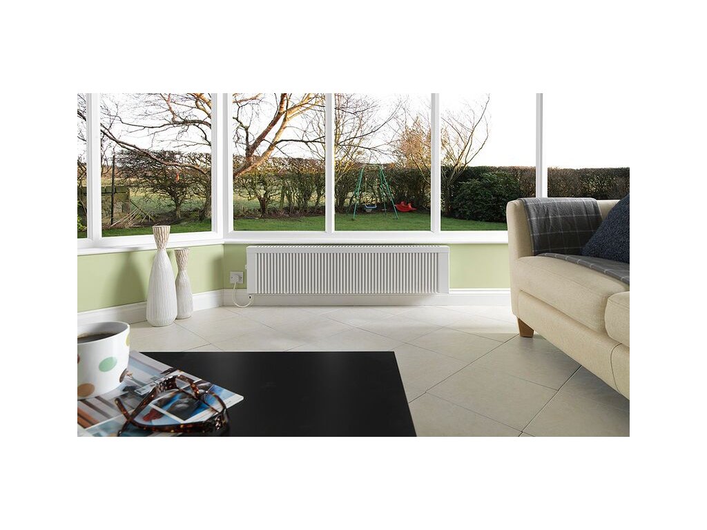 Přímotop s akumulací lze snadno připojit ke standardní elektrické zásuvce nebo ke stávajícímu elektrickému vedení. Dodávají se s držáky pro montáž na zeď, ale můžete je také položit na podpěrné nohy (či kolečka), které jsou součástí volitelného vybavení. Jedná se o topidla s velmi úsporným akumulačním vytápěním, která lze instalovat i pod hluboká okna, protože mají nízkou výšku - pouhých 34cm. Díky těmto parametrům jsou použitelná v zimních zahradách. Všechny naše standardní modely jsou dodávány s vestavěným nebo ručně ovládaným pokojovým termostatem. U plně regulovatelného topného systému, lze tyto topidla provozovat s naším řídicím systémem ECO (s připojením k internetu) a také pokojovými termostaty. Pokud si vyrábíte vlastní elektřinu, lze se připojit přes správce energie TT.