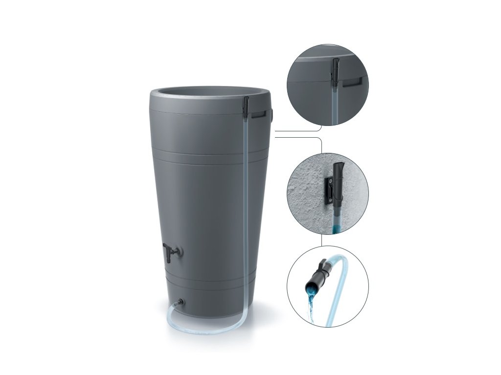 Koncovku hadice můžete použít se sudy MAZE, SMOOTH, PERUNO a TUBE. Kohoutek je vybaven těsněním a maticí. Díky tomu je kompatibilní se všemi sudy na dešťovou vodu ze sortimentu Waterform.