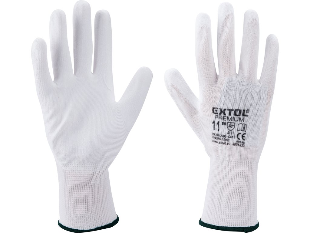 rukavice z polyesteru polomáčené v PU, bílé, velikost 11"