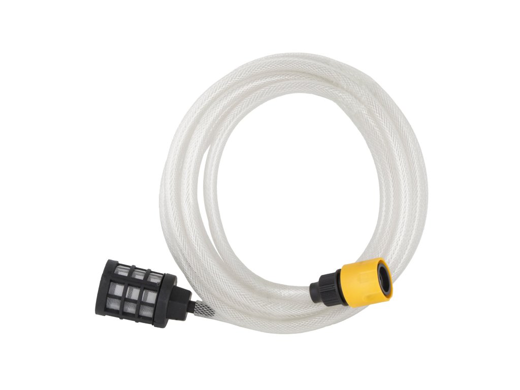 Flexibilní přívod vody: Díky 5metrové hadici můžete čerpat vodu z jakéhokoli zdroje, jako je sud s dešťovou vodou, kýbl, nebo potok.