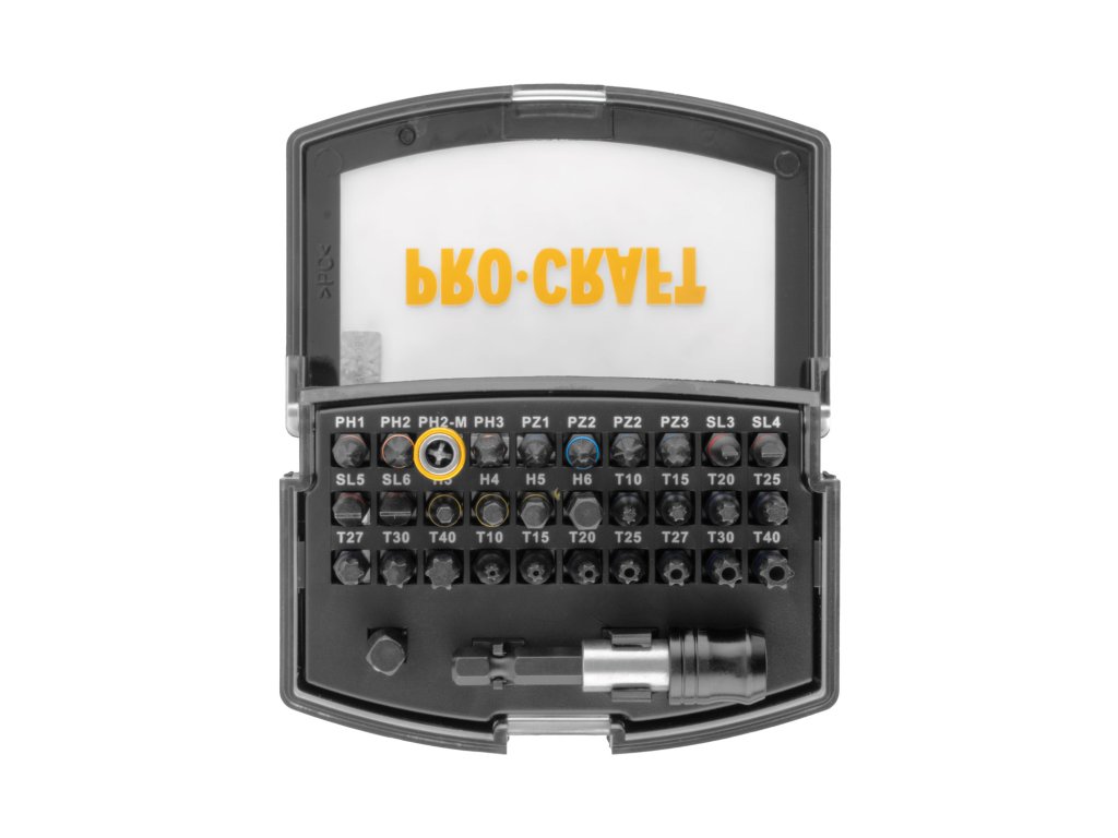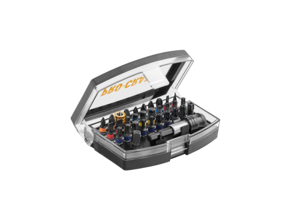 30 ks 25mm bitů: Phillips: PH1, PH2, PH3, Pozi: PZ1, 2xPX2, PZ3 Ploche: SL3, SL4, SL5, SL6 Torx: T10, T15, T20, T25, T27, T30, T40