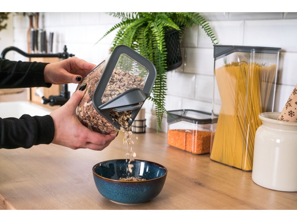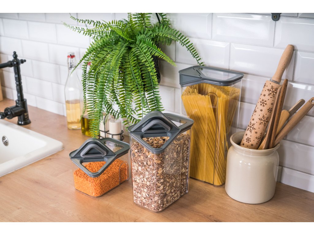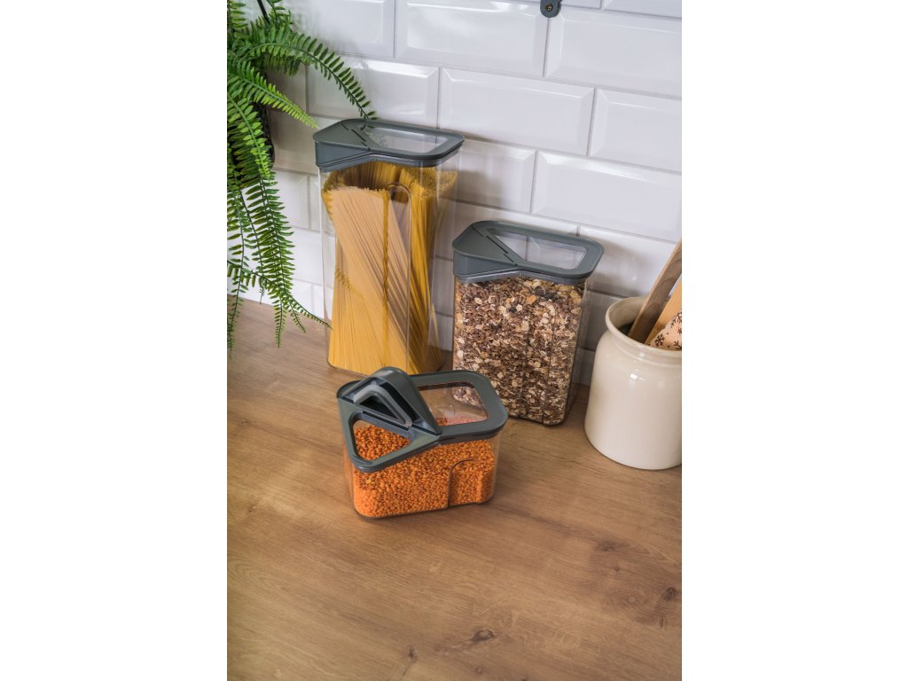 Dózy G21 oceníte při skladování mouky, těstovin, rýže i sušeného ovoce. Díky třem různým velikostem si snadno zorganizujete spíž nebo lednici podle aktuální potřeby. Vzduchotěsné víko udrží potraviny déle čerstvé, zatímco odklápěcí roh víka s násypkou umožní pohodlné a přesné vysypávání obsahu. Kvalitní plast neobsahuje BPA, proto jsou dózy 100% bezpečné pro použití s potravinami. Stohovatelný tvar oceníte v případě, že potřebujete dózy uskladnit na sebe do jedné police.