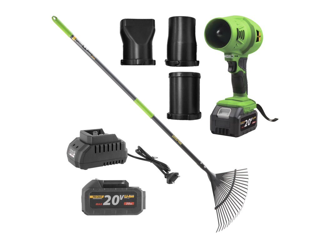 Sada hrábě na listí lamelové 150cm Procraft GLR-22 a aku fukar Procraft