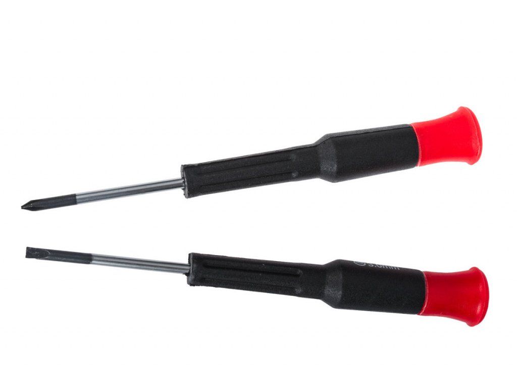 Jako doplněk najdete v sadě i samosvorné kleště s pogumovanými rukojetěmi (220 mm) a hodinářské šroubováky se svidříkovou hlavou 3 mm SL a PH.