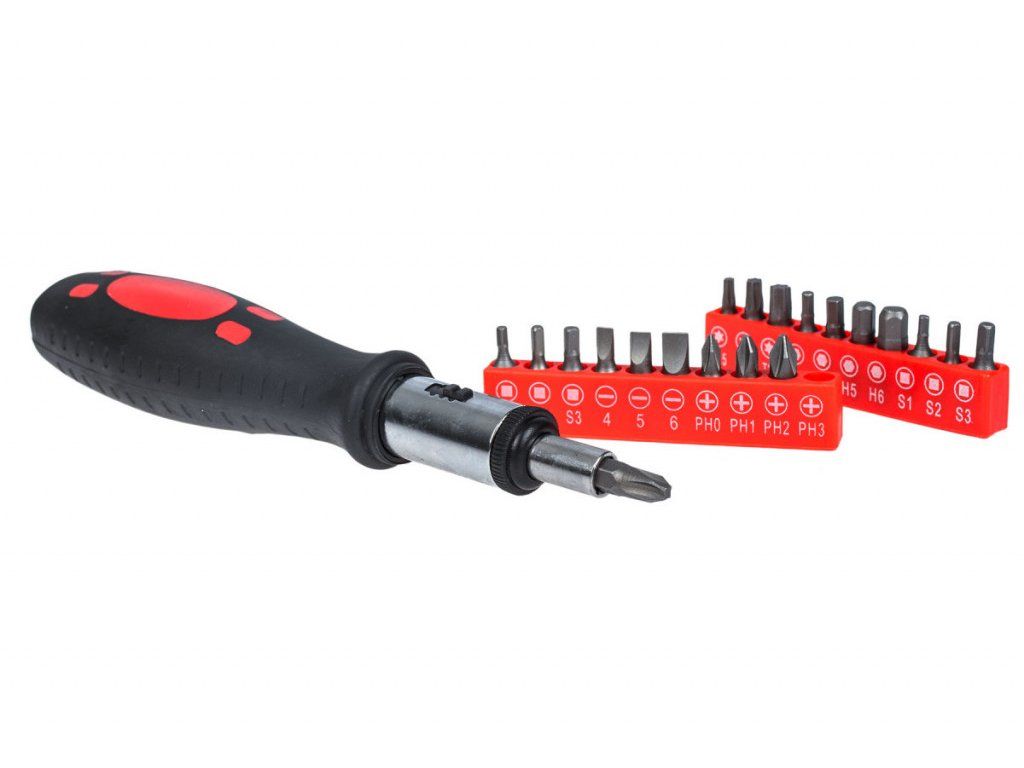 V sadě bitů naleznete běžně potřebné bity s hroty SL4, SL5 a SL6, PH0, PH1, PH2 a PH3, T15, T25, T30, H3, H4, H5 a H6 a navíc i S1, S2 a S3 (bity S jsou po 2 ks). Navíc jsou k ráčnovému šroubováku sada nástrčných klíčů 5, 5.5, 6, 7, 8, 9, 10, 11, 12 mm.
