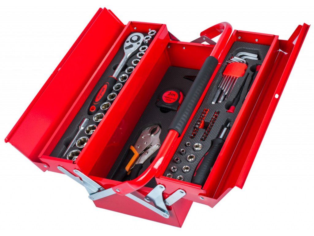 Odolná kovová basa s nářadím je vhodná pro domácí kutily i montéry, kteří musejí nářadí neustále přenášet. Basa má rozměry v zloženém stavu 430x200x160 (dxšxv) + madlo 120 mm, v rozloženém stavu 430x510x200 (dxšxv) + madlo v znížené polože 40 mm.