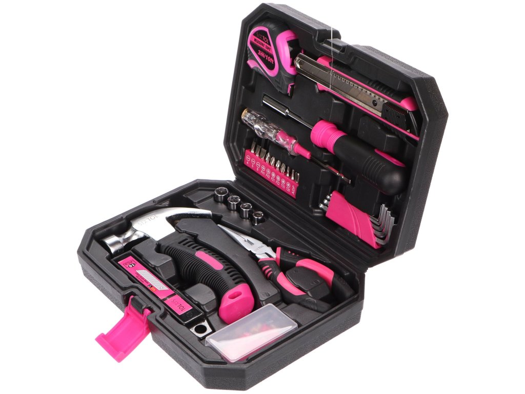 Sada nářadí Sixtol HOME PINK 66 se zalíbí každé praktické ženě či kutilovi, který má v oblibě růžovou barvu. Provedete s ní drobné opravy v domácnosti. Ve stylovém kufříku najdete celkem 66 kusů náčiní. Využijete je doma i v dílně.