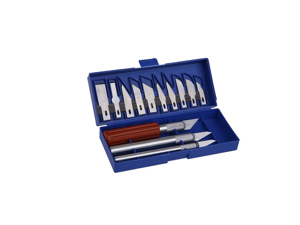 Multifunkční sada skalpelů - nožů, ergonomické rukojeti s rychloupínacím úchytem čepelí, široké možnosti využití v modelářství, řezbářství, průmyslu, plastový box.Doplňkové parametry