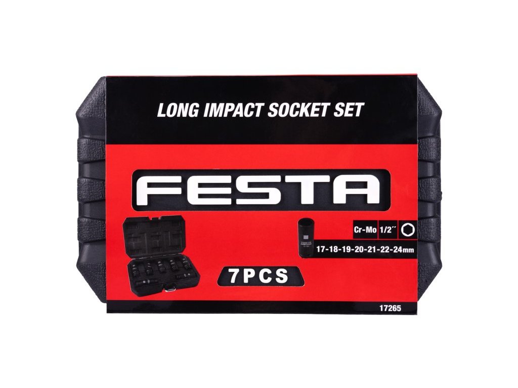 Sada úderových hlavic FESTA Industry prodloužených 1/2" Cr-Mo