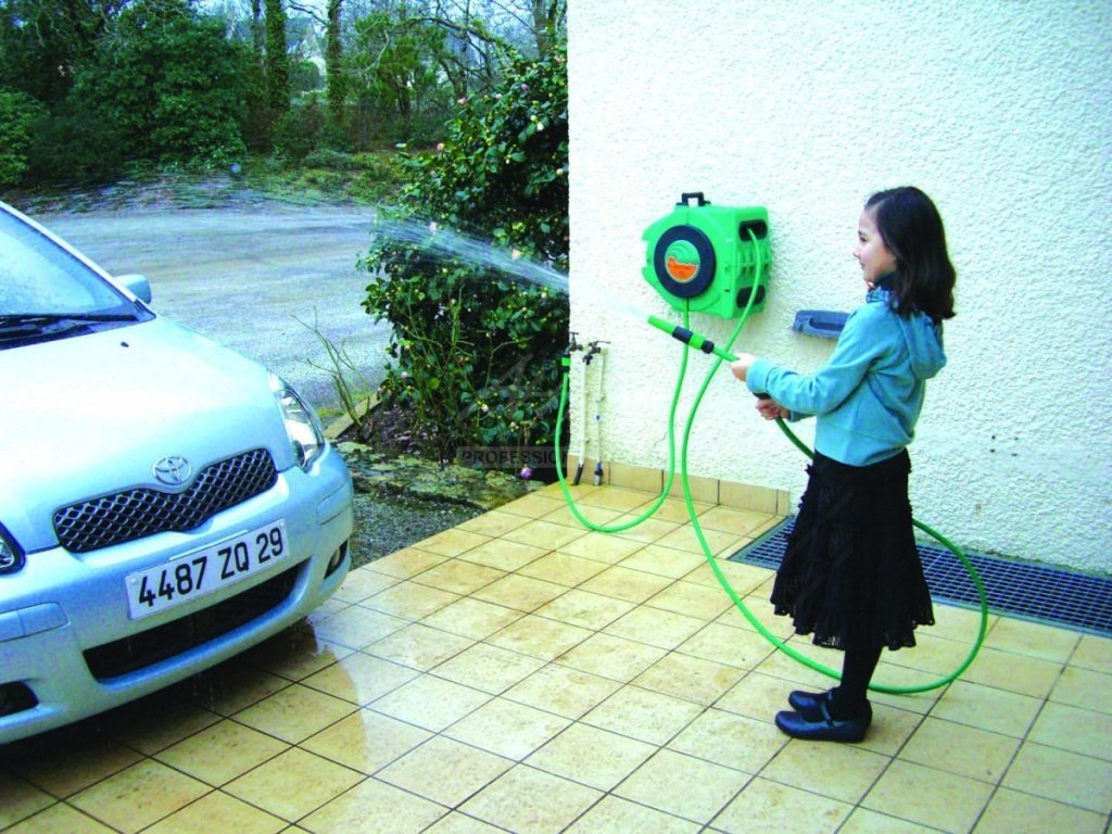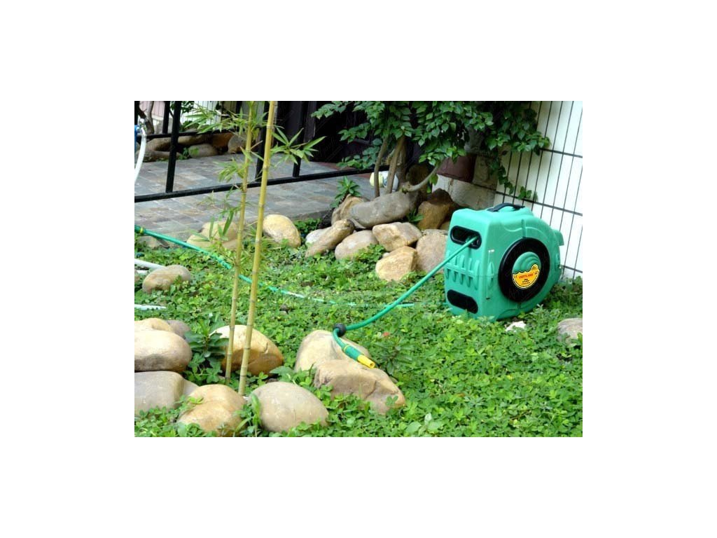 Ideální naviják na zahradní hadici na zahradní hadici do dílny i garáže, šetří místo i čas při skladování hadice. Pro upevnění na stěnu, strop nebo jinou konstrukci je buben opatřen otočným držákem. Navíjení hadice na buben prodlužuje její životnost.