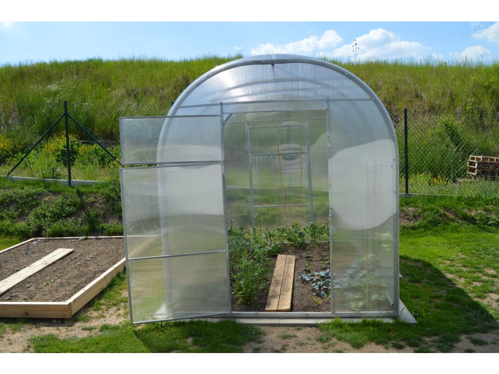 - 2x dvoudílné dveře na pantech 0,90 x 1,80 m s ventilačním oknem - skleník je průchozí
