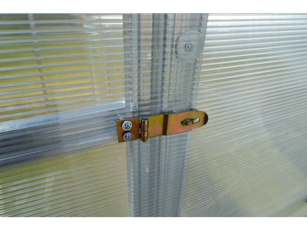pozor - u tohoto modelu skleníku je nutné desky pro přesný rozměr předního a zadního čela svépomocí vyřezat z dodaných polykarbonátových desek podle přiloženého návodu