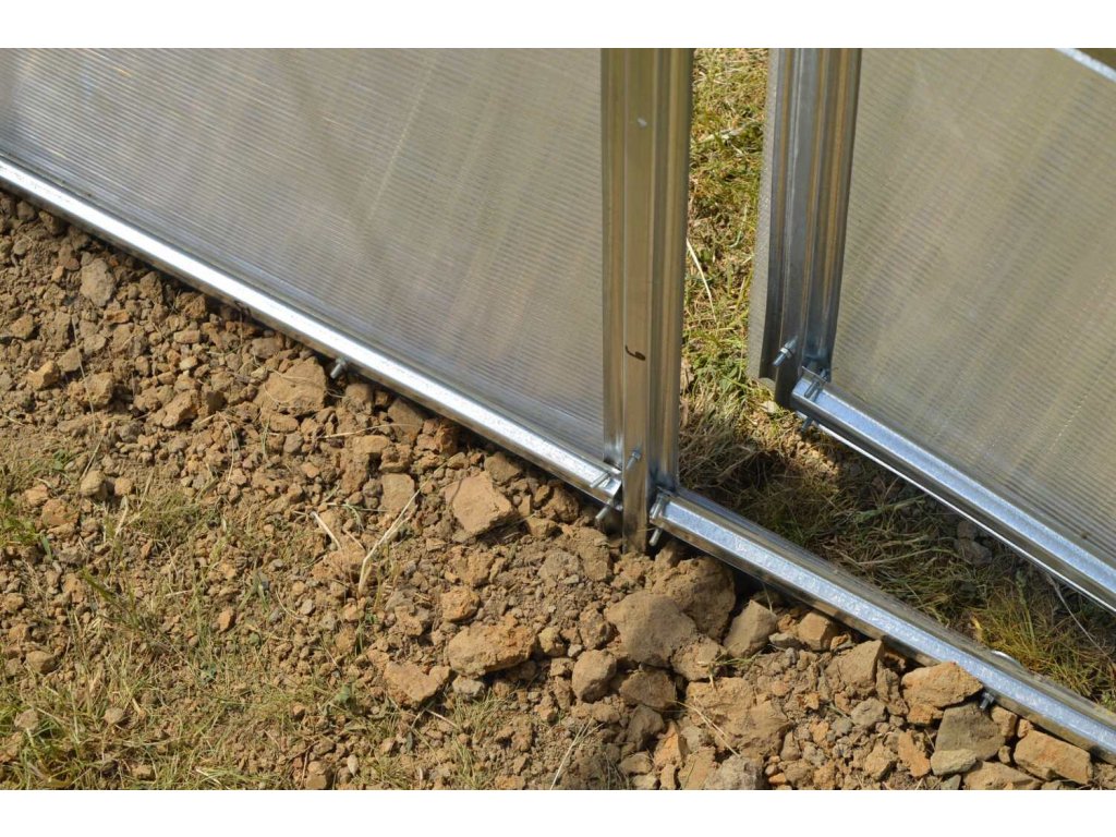 Obsahem dodávky je kompletní skleník = nosná konstrukce, veškeré potřebné spojovací prvky + polykarbonátové desky. Ke skleníku je možné dokoupit řadu nadstandardního příslušenství - regály, teploměry, vlhkoměry, zavlažovací zařízení, elektrické odporové vytápění půdy. Skleník nepotřebuje žádnou podezdívku , protože konstrukce skleníku je připravena na zapuštění do země do hloubky cca 20 - 25 cm. Do země se zasype konec oblouků, kde na některých je přišroubován profil ve tvaru obráceného velkého písmene T, který pak brání vytržení skleníku ze země. V ČR a SR toto řešení vzhledem k silným letním bouřím nedoporučujeme - ideální je kotvy zabetonovat. Skleník lze ukotvit i na zděnou nebo betonovou podezdívku, případně je možné skleník přišroubovat k dřevěnému rámu, vyžaduje to však drobné kutilské zásahy a především domácí vyrobení atypických plechových L úchytek pro přišroubování skleníku k podezdívce (výrobce s kotvením na podezdívku).