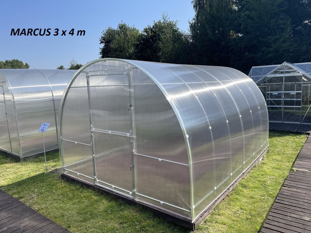 obloukový skleník LANITPLAST MARCUS trubková konstrukce 20 x 20 mm , rozteč oblouků 67 cm , dvojité dveře vpředu, ventilační okno vzadu, prosklení nutno vyřezat z dodaných polykarbonátových desek, možnost montáže střešního okna - ano