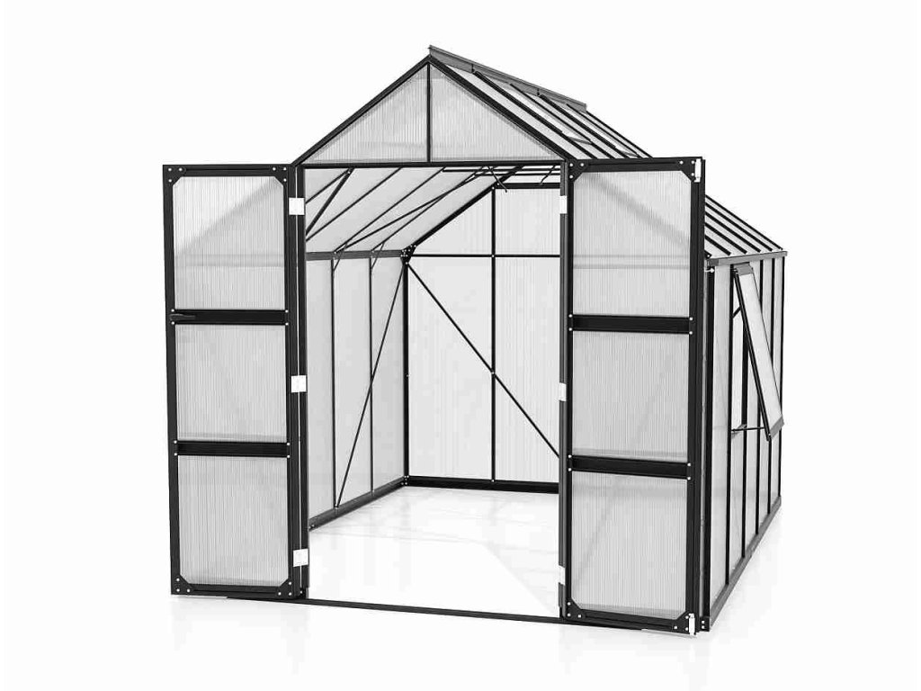 Velké a široké skleníky řady OLYMP jsou zařazeny do kategorie PREMIUM - skleník je vyrobený značkovým výrobcem z Velké Británie. Skleník je vyrobený z eloxovaných hliníkových profilů. Prosklení je z tepelně-izolačních komůrkových polykarbonátových desek síly 4 mm. Prosklení je do hliníkových profilů kotveno pomocí ocelových sponek.