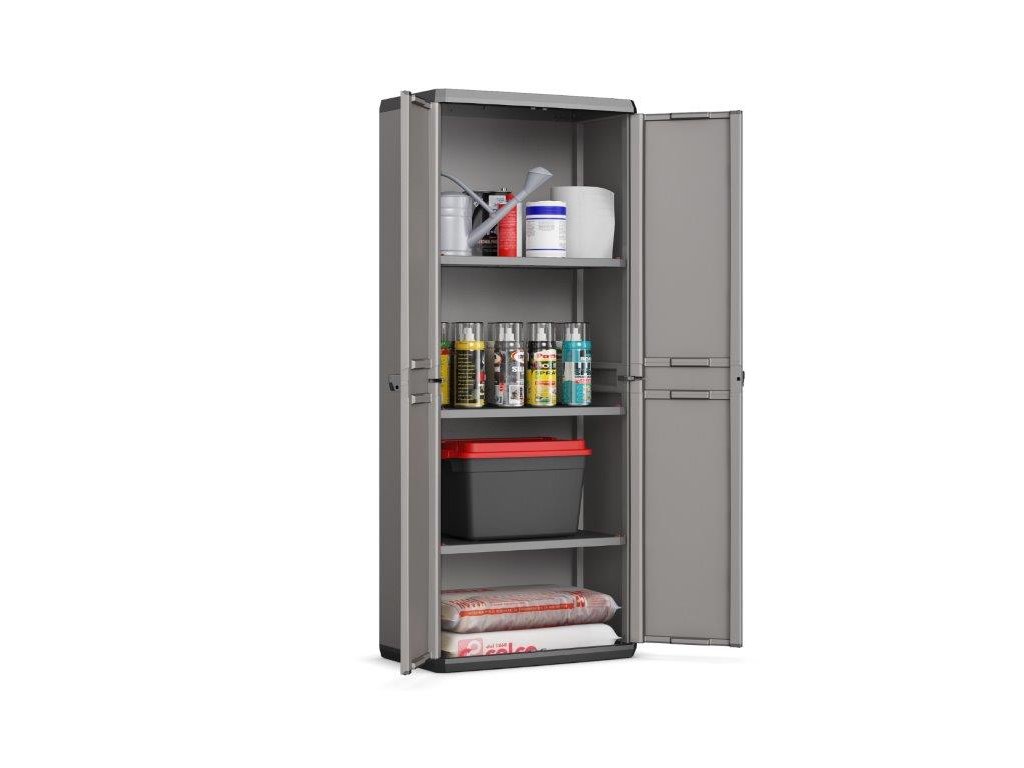 Skříň Keter Piú High se skvěle hodí pro použití v náročnějších podmínkách – ve vlhkém sklepě, garáži nebo na zastřešené terase. Díky třem výškově nastavitelným policím si vnitřní prostor přizpůsobíte podle aktuálních potřeb. Každá police unese až 15 kg, takže pohodlně uskladníte i těžké nářadí nebo sklenice se zavařeninami do zásoby. Skříň můžete uzamknout visacím zámkem, čímž zabezpečíte obsah před neoprávněným přístupem. Robustní panty a kompaktní rozměry zajišťují dlouhou životnost a univerzální využití v jakémkoli prostoru.