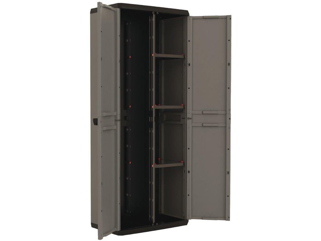 Skříň Keter Piú Utility nabízí praktické řešení pro přehledné uskladnění nářadí, čisticích pomůcek nebo zahradního vybavení. Díky kombinovanému vnitřnímu prostoru poskytuje nejen místo pro menší předměty, ale také pro dlouhé náčiní jako jsou smetáky nebo hrábě.