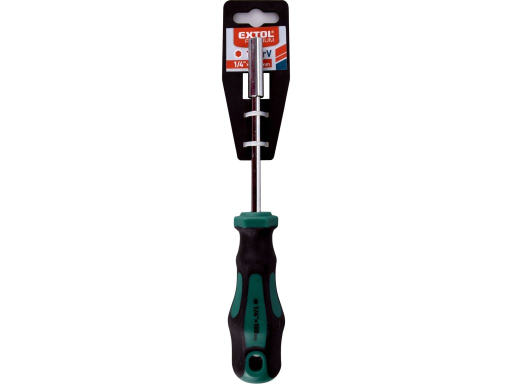 - ergonomická rukojeť z tvrdého PP plastu, na povrchu měkčená kvalitní protiskluzovou TPR pryží zvýšuje kroutící sílu šroubováku