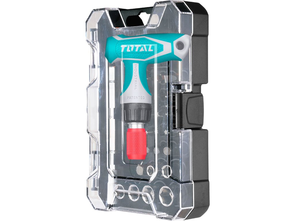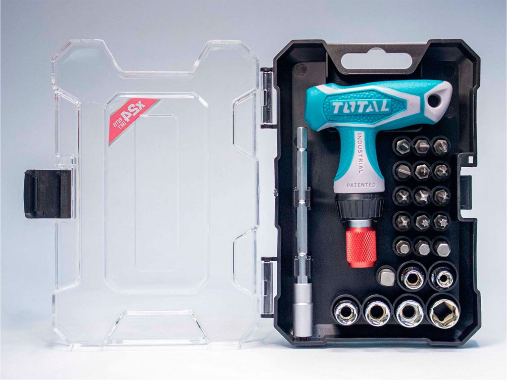 šroubovák ráčnový s T-rukojetí a hroty, sada 24ks, CrV
