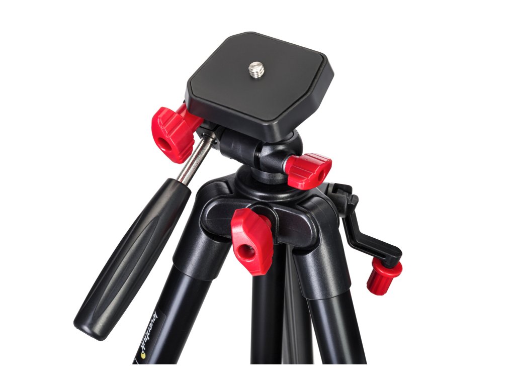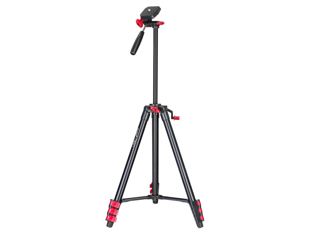 Hlavu stativu lze otáčet o 360° a rovněž zvedat nebo spouštět. Stativ lze ovládat pomocí pohodlné pákové rukojeti. Horizontální deska se standardním 1/4" závitem umožňuje rychlou instalaci a demontáž zařízení. Plošinu lze překlápět vertikálně až o 90°. Tato funkce je vhodná pro fotografování, kdy je nutné rychle změnit polohu rámečku z horizontálního na vertikální. Všechny osy stativu mají aretační knoflíky.