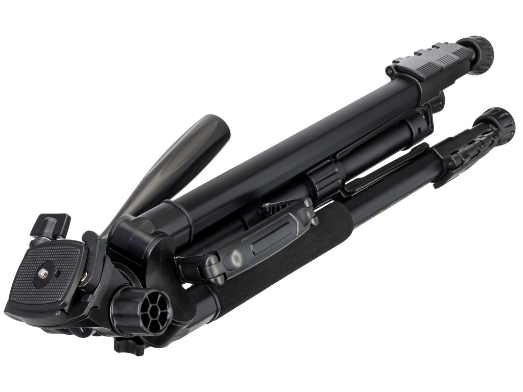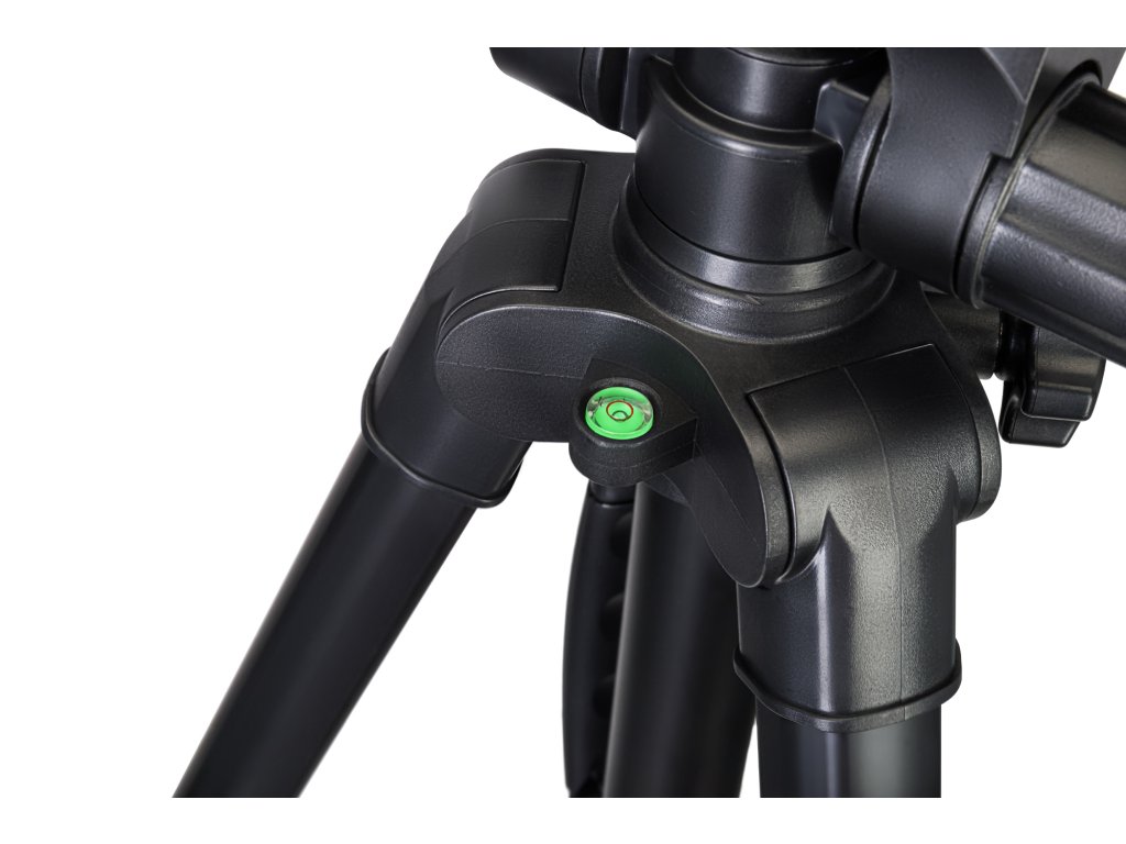 Stativ nabízí široký rozsah nastavení výšky. Buď můžete vysunout nohy, nebo zvednout středový sloupek. Maximální výška je 1 760 mm. Bublinková vodováha umožňuje nastavení fotoaparátu rovnoběžně se zemí. Aby byl stativ stabilnější, můžete na háček středového sloupku zavěsit závaží.