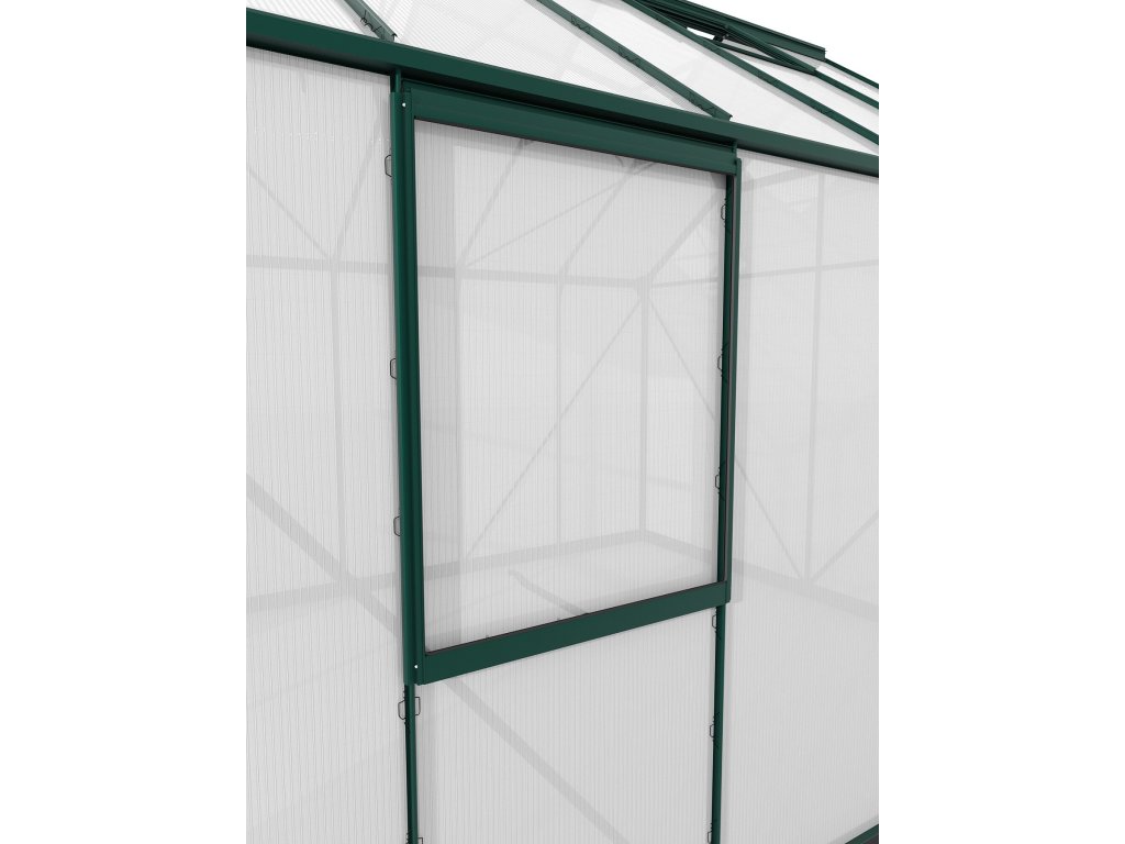 Hliníkový skleník, š 2,57 x d 3,83 m, zelená barva, 4x stř. okno, polykarbonát 6 mm, plocha 9,84 m2. nejprodávanější obloukové skleníky klikni...