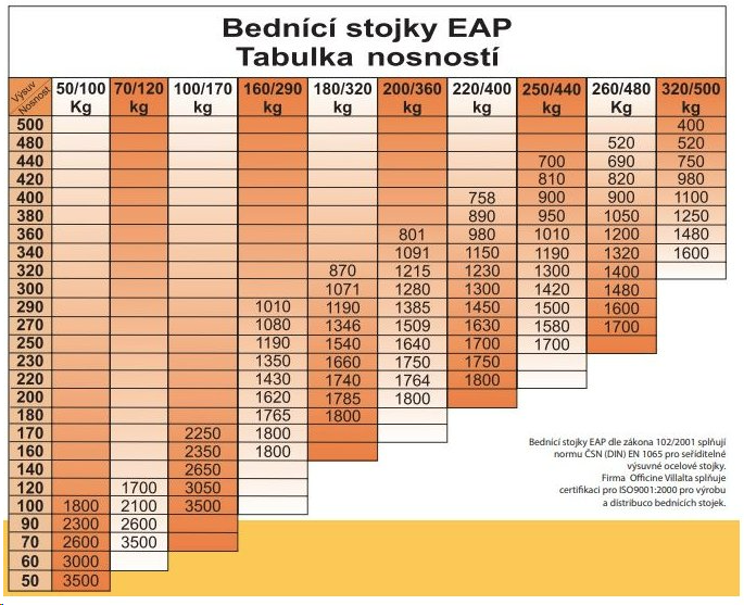 - pravidelná rozteč aretačních otvorů, závit pro přesné nastavení požadováné výšky i v zatíženém stavu