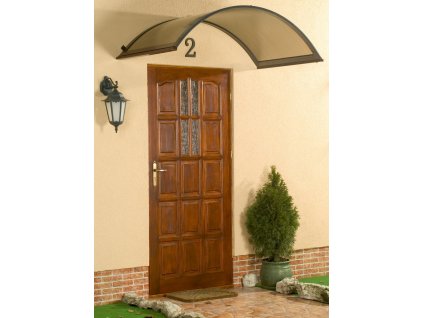 Hliníková vchodová stříška, hnědá, š 1600 x h 870 x v 280 mm, kouřový komůrkový polykarbonát 4,5 mm.