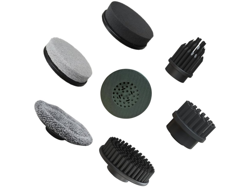 Sada obsahuje i hrubý čistící kotouč, který je ideální pro odstranění odolné špíny a mastnoty z tvrdších povrchů.