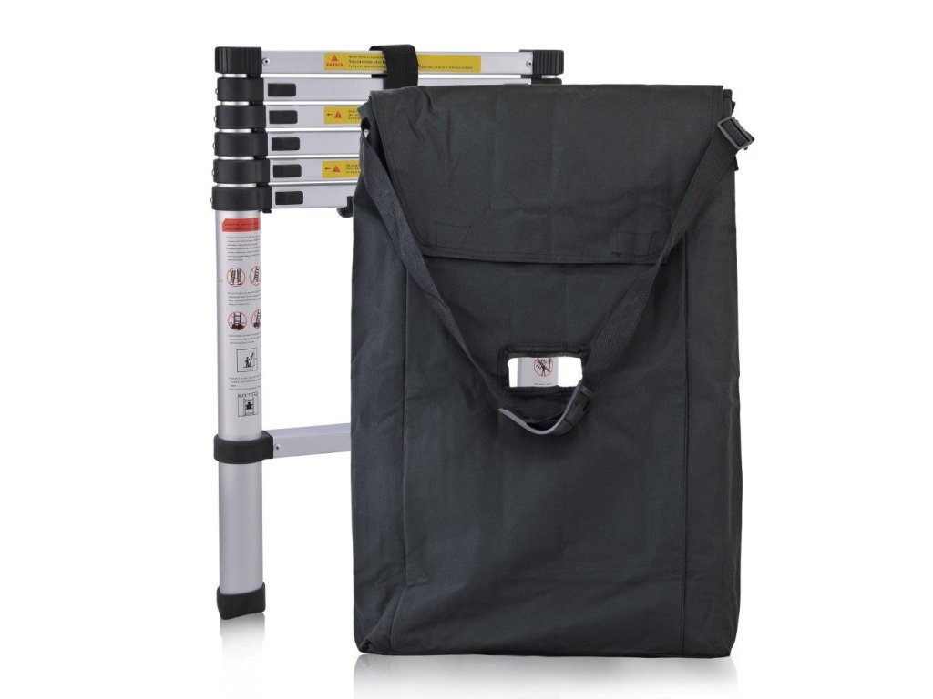 Její pohodlný trak je opatřen nárameníkem, díky kterému se váha žebříku rozloží na větší plochu a manipulace s ním tak bude mnohem jednodušší. Uprostřed tašky na teleskopický žebřík je otvor pro rychlé a pohodlné uchopení žebříku.