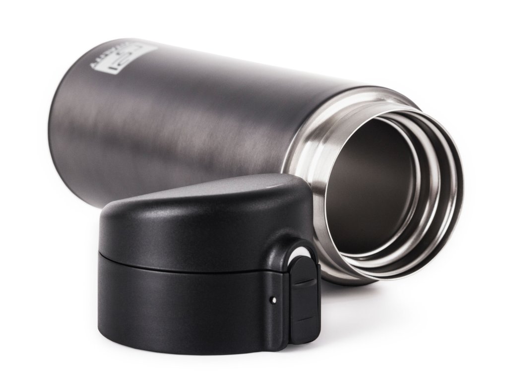Víčko termoláhve G21 nejenže výborně těsní, ale navíc umožňuje i pohodlné pití přímo z lahve. Díky praktické a spolehlivé bezpečnostní pojistce víčka se vám termohrnek G21 sám od sebe neotevře, takže jej můžete bez obav položit i do kabelky nebo batohu.