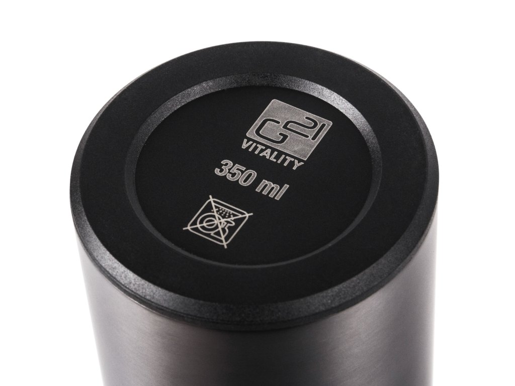 Největší předností termohrnku G21 je kvalitní termoizolace. Termoláhev z nerezové oceli má dvojité stěny a dokonale těsnící víčko. Nápoje tak udrží v požadované teplotě opravdu dlouho – horké až 12 hodin, studené k osvěžení až 24 hodin.
