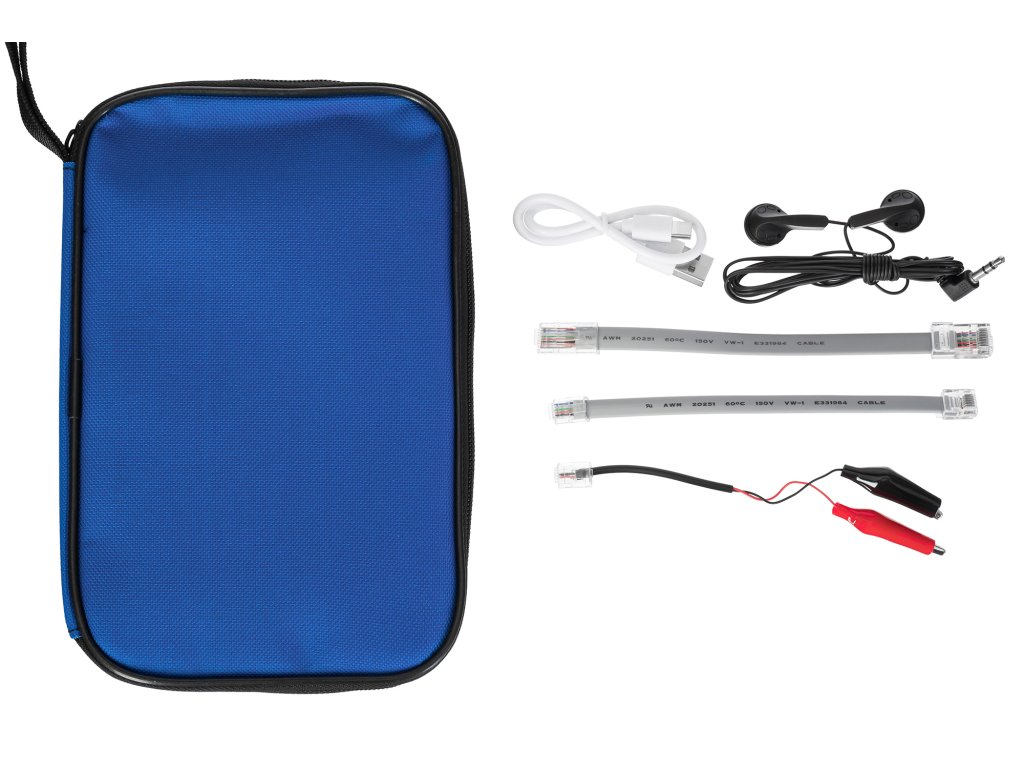 - Kontrola kvality krystalové hlavy kabelu, test stavu telefonní linky, detekce polarity napětí