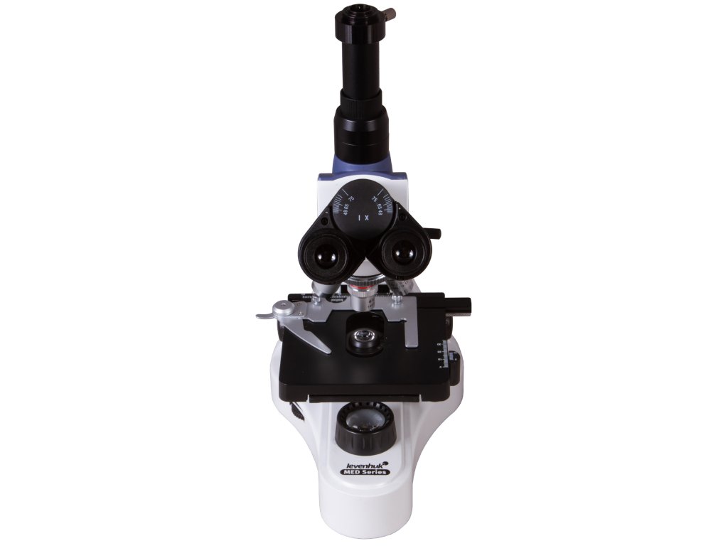 Trinokulární mikroskop Levenhuk MED 10T je kompatibilní s digitálními fotoaparáty Levenhuk (kupují se samostatně). Fotoaparáty Levenhuk se instalují místo okuláru na jeho tubus.