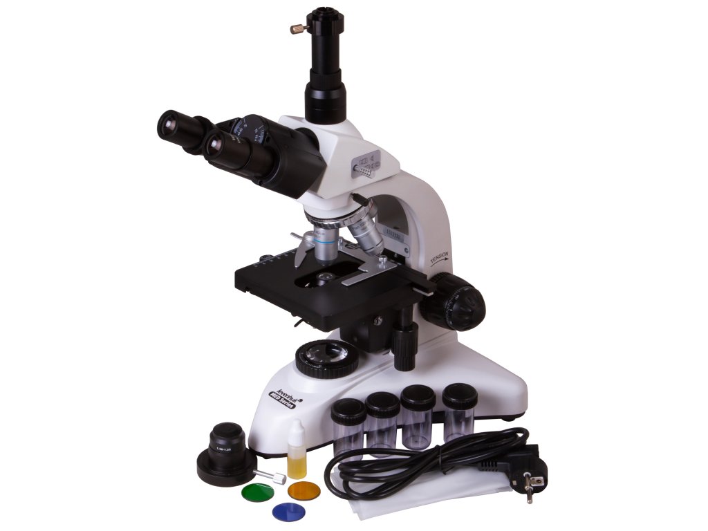 Trinokulární mikroskop Levenhuk MED 25T je profesionální optický přístroj pro laboratorní výzkum. Je vhodný pro provádění pozorování pomocí metody jasného a tmavého pole. Tento mikroskop umožňuje nastavení Köhlerova osvětlení a studium složitých mikrostruktur až při 1000x zvětšení. Je vynikající pro univerzitní, lékařskou nebo výzkumnou laboratoř nebo vědecké centrum.