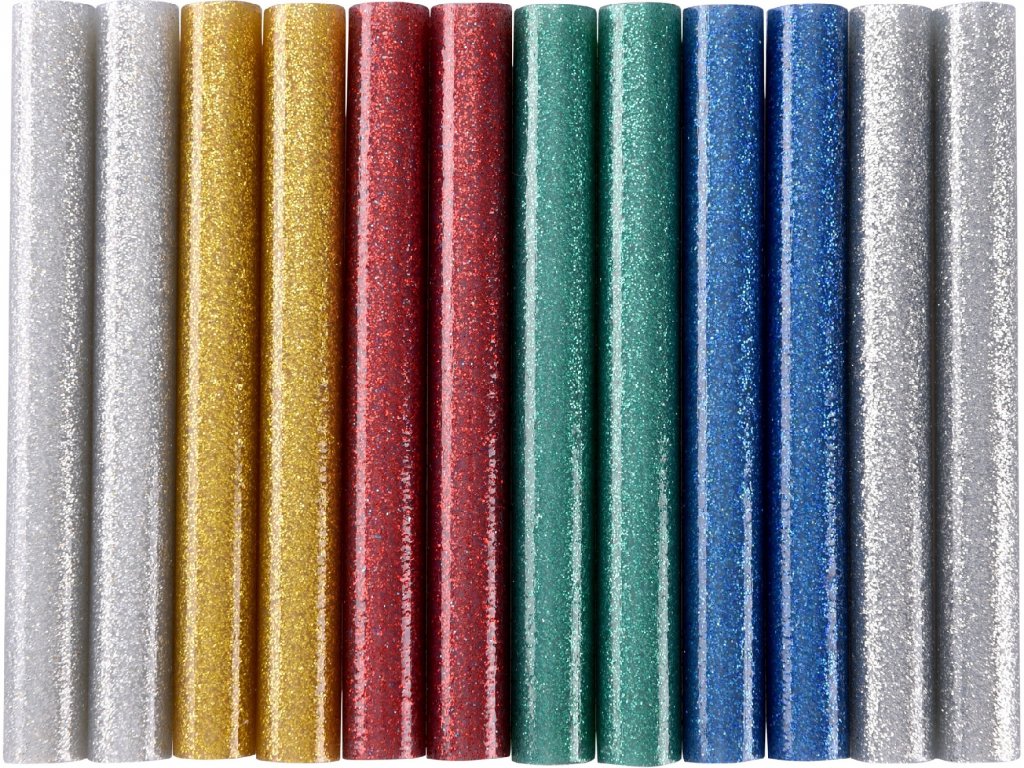 tyčinky tavné, mix barev se třpytem (glitter), pr.11x100mm, 12ks