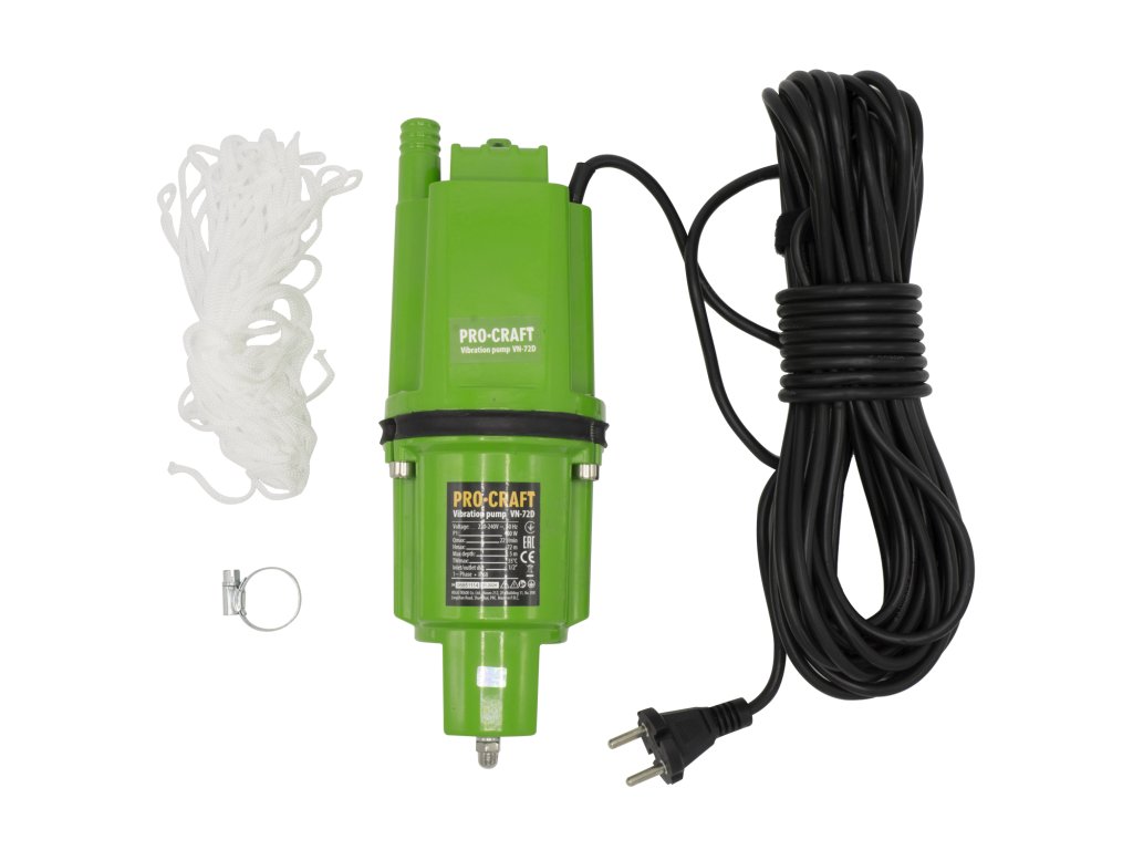 Vibrační čerpadlo Procraft VN-72D je výkonné a spolehlivé řešení určené pro čerpání čisté vody z velkých hloubek, jako jsou studny a vrty.