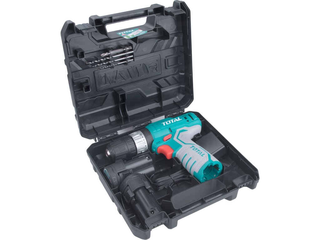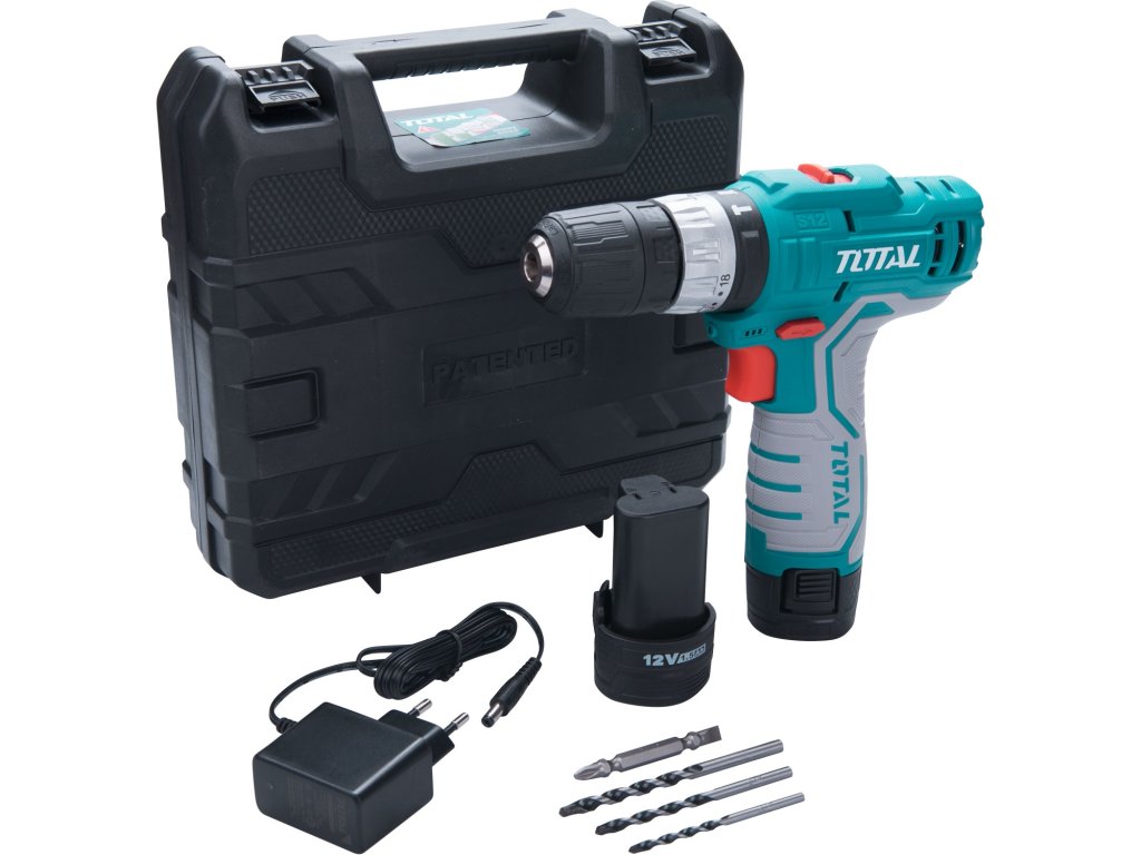 Vrtací šroubovák je dodáván se 2 kusy baterie, nabíječkou a je zabalen v malém a praktickém kurfu pro snadný přenos.