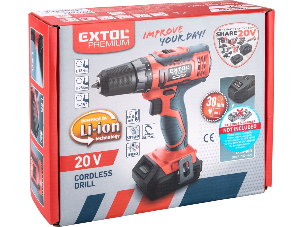 Akumulátor lze použít ve všech 20V aku strojích z řady Extol Premium 88918xx.