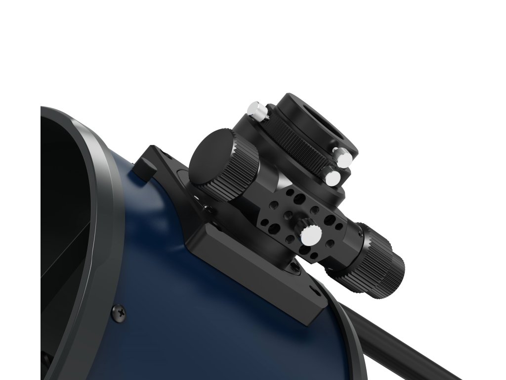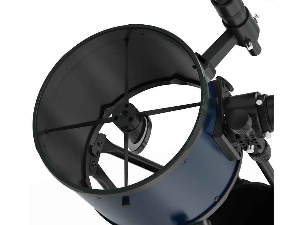 Hvězdářský dalekohled je navržen tak, aby byl přenosný, a využívá systém otevřeného příhradového tubusu. Rychle se sestaví z robustních komponentů a v rozloženém stavu zabere minimum místa. OTA je namontována na Dobsonově základně. Tato montáž je stabilní, robustní a vyrobená tak, aby vydržela, takže ovládání dalekohledu Levenhuk New Skyline PRO 12" je jednoduché a intuitivní. Montáž je vyrobena z opracovaného dřeva, sama váží 16,5 kg a snadno unese značnou hmotnost velkého optického tubusu (20,5 kg). Balení hvězdářského dalekohledu obsahuje veškeré příslušenství, které potřebujete k zahájení pozorování ihned po vybalení z krabice: optický hledáček 8x40, ventilátor chlazení pro primární zrcadlo, dva okuláry Plössl (10 mm a 25 mm, 1,25") a ochranný kryt, který chrání komponenty OTA před prachem a větrem.