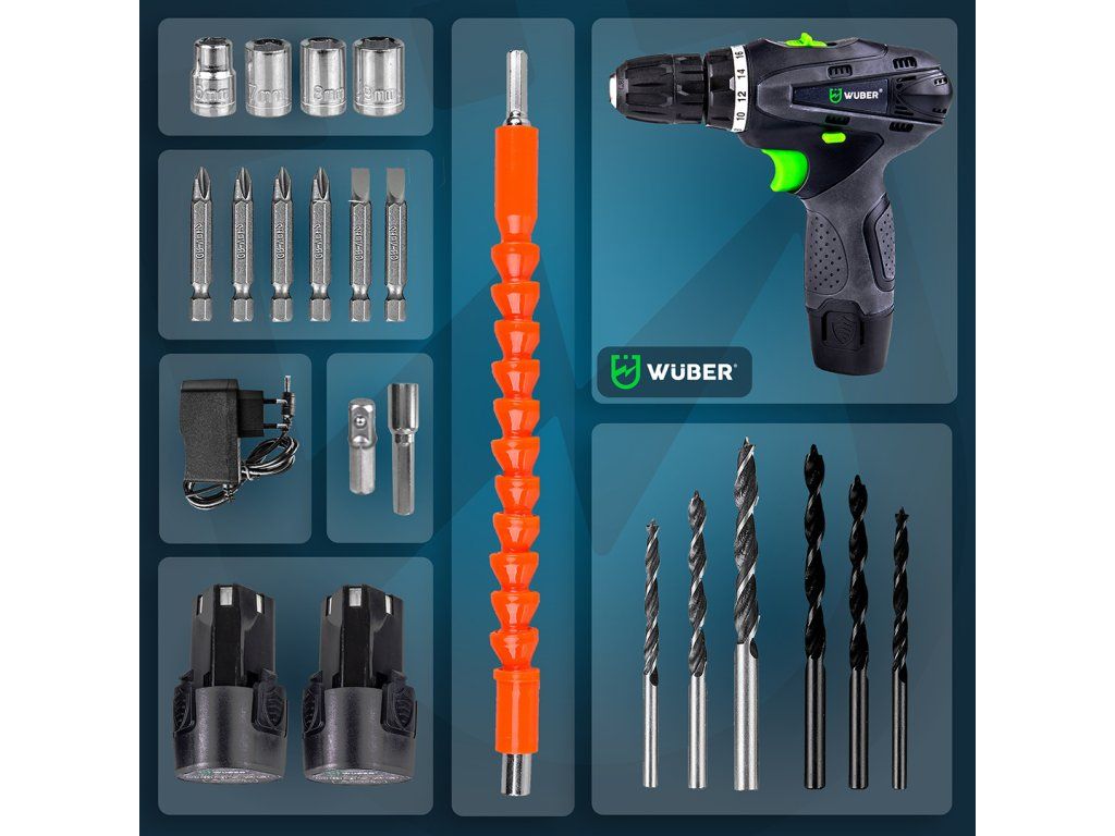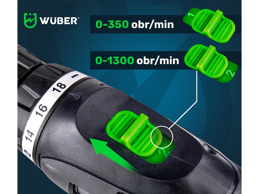 WUBER Aku šroubovák 18V + 2 baterie, nabíječka, příslušenství W52001